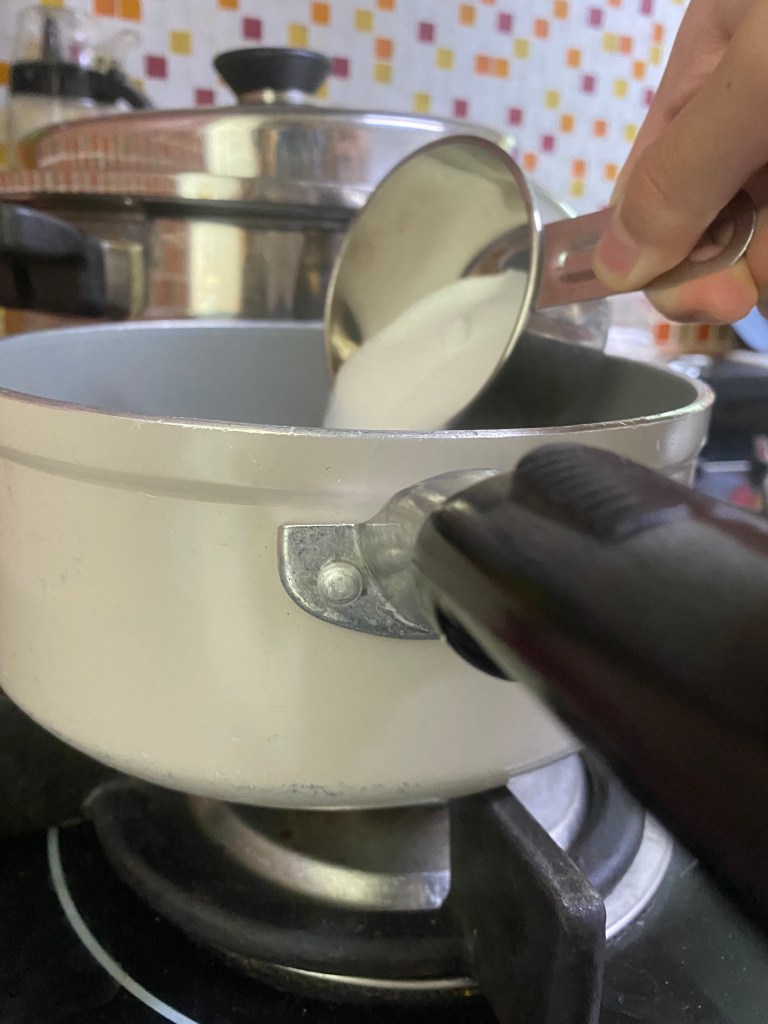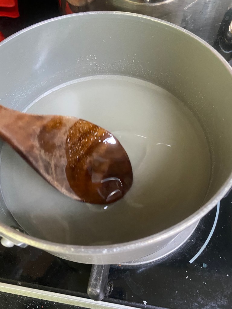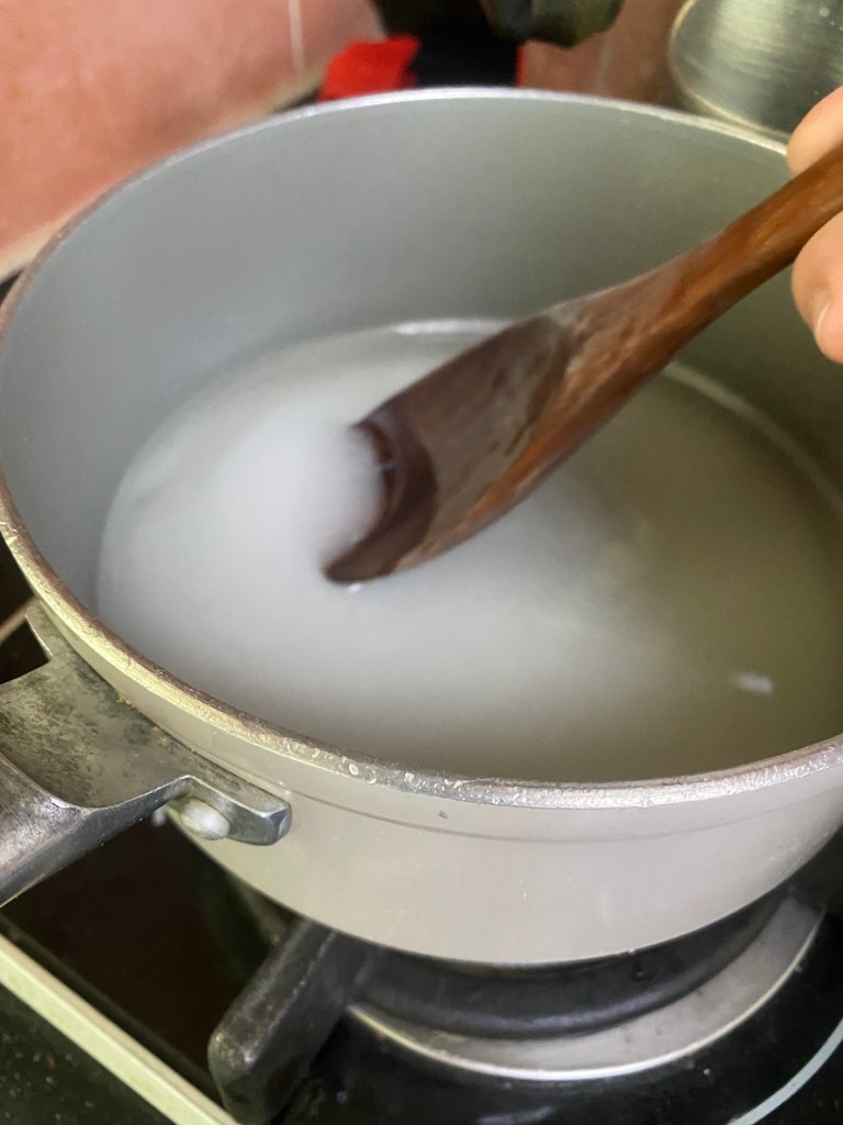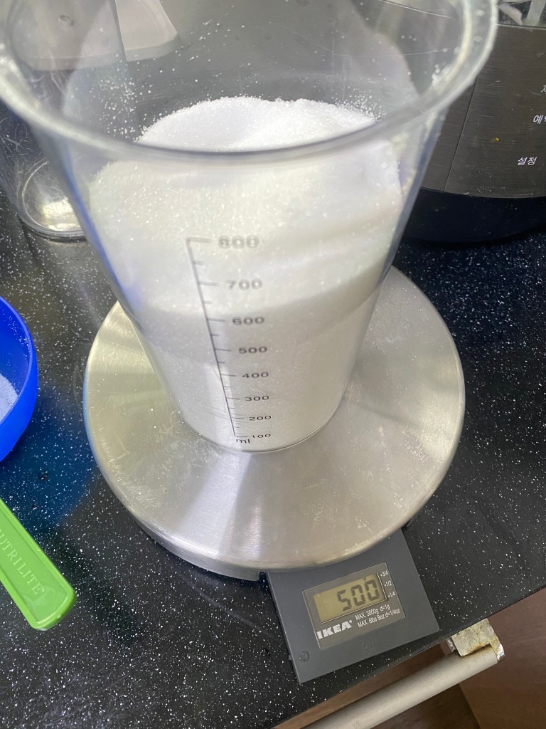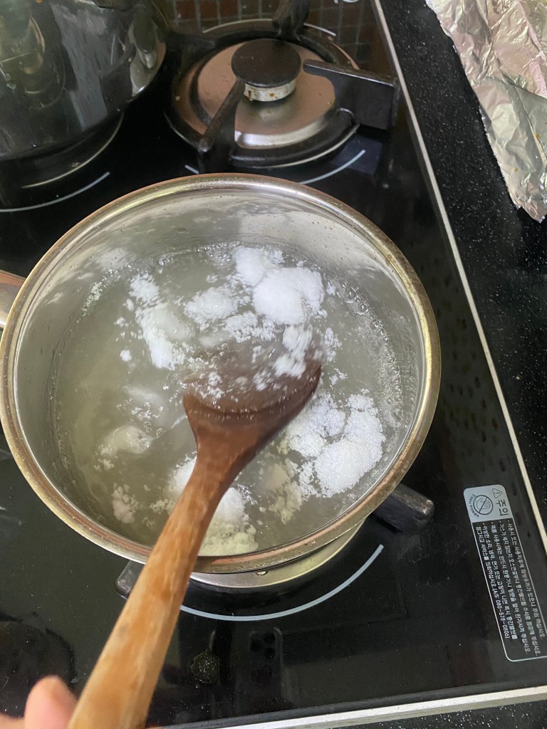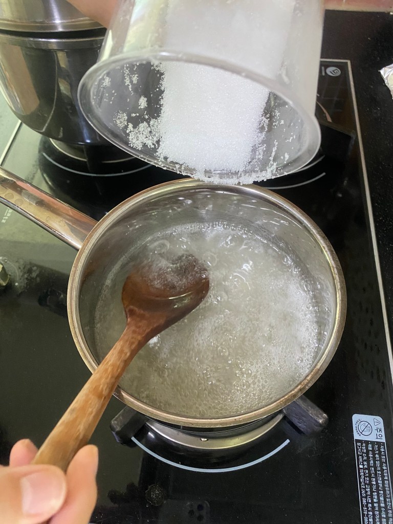 For the sugar to water ratio, I did it by 2.5:1 again. I added 500g of sugar to 250 grams of water.