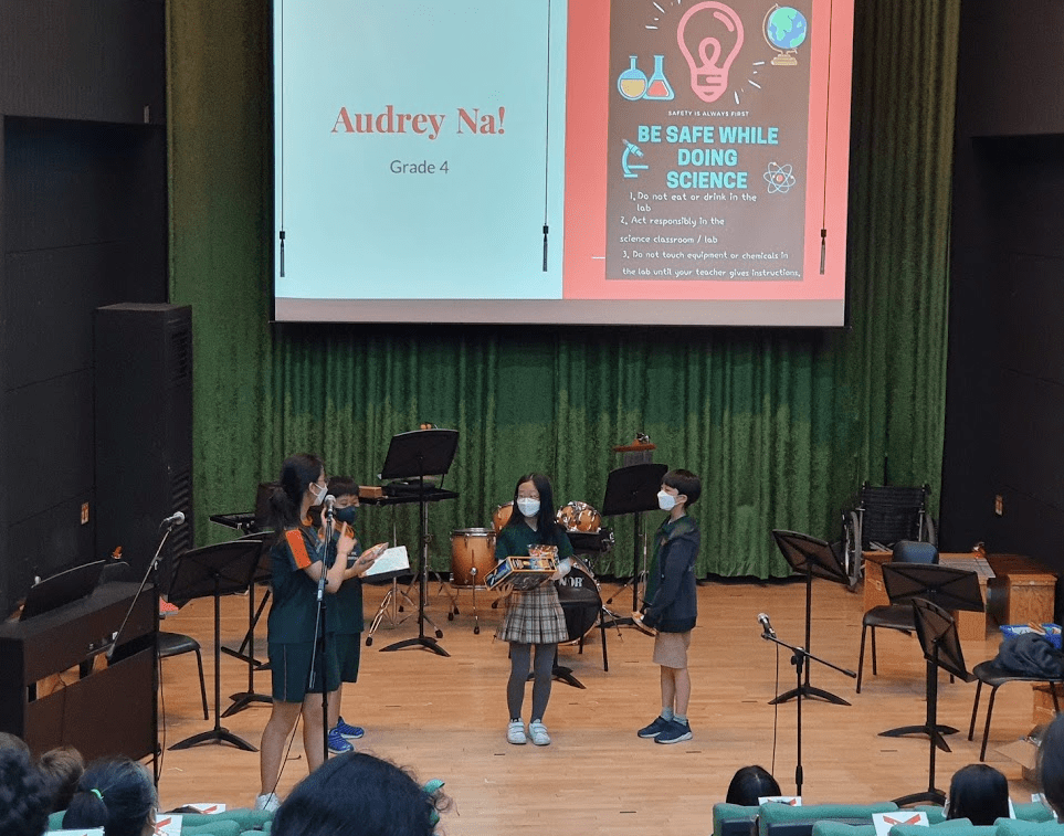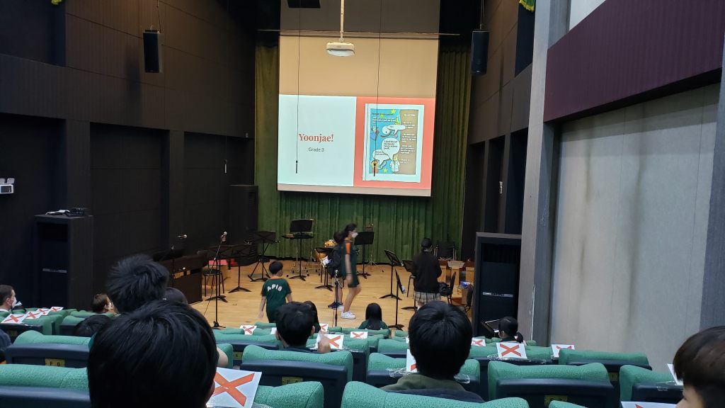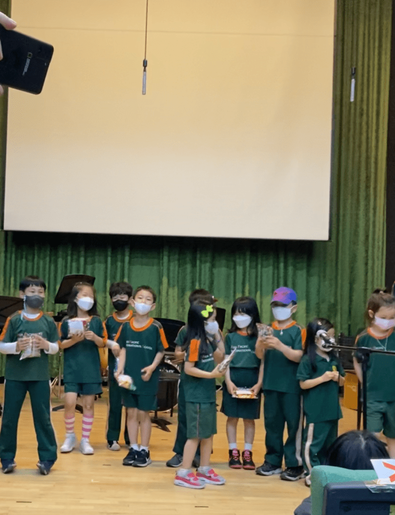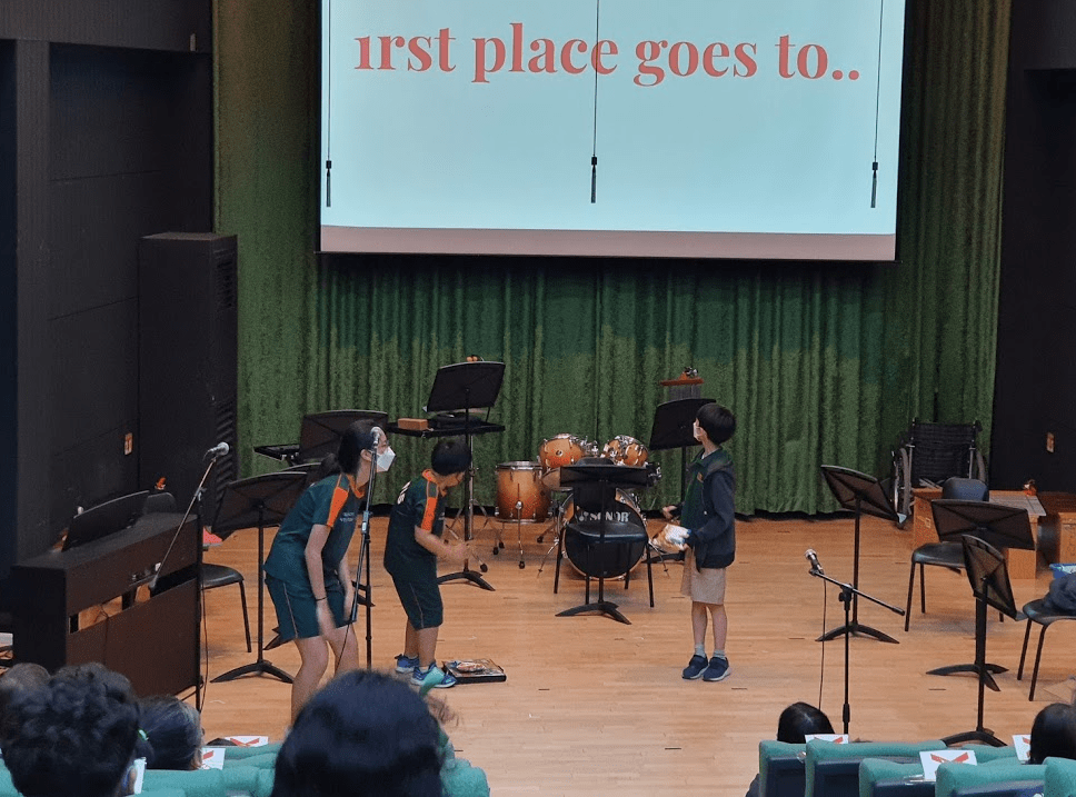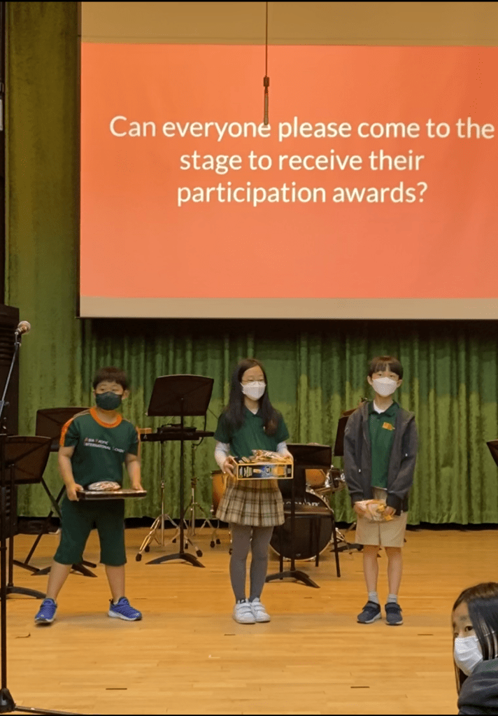 We only made about 35 goody bags, assuming there would only be 35 kids receiving the participation prizes. But all of the Elementary kids stepped down onto the stage to receive their own prizes, but THANKFULLY, we had enough. (We assumed 35 would be more than the number of kids who submitted because there were a few kids that submitted 3 or more posters)
