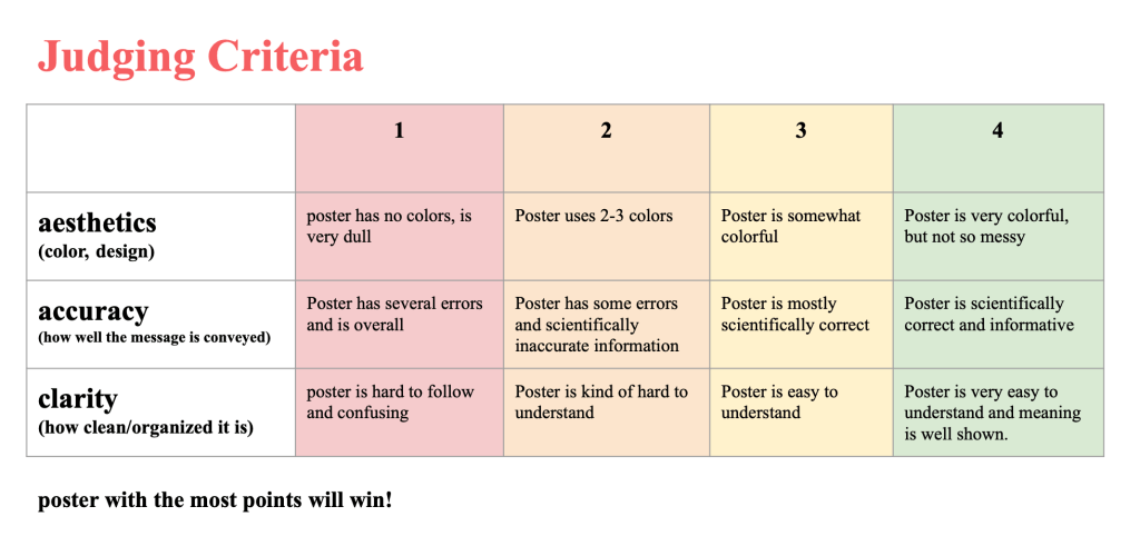 Although the club members were quite pessimistic about the poster illustrations, I persuaded them that we should grade the posters in the perspective of an Elementary student, because these are really good posters!