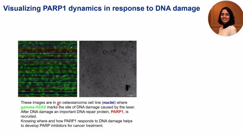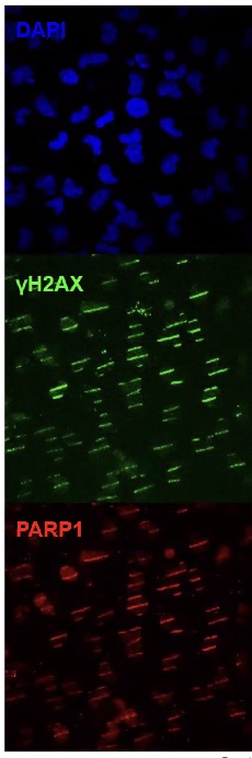 make damage and go after a minute and image it, see how fast the proteins get recruited —> to cure cancer that damage will produce