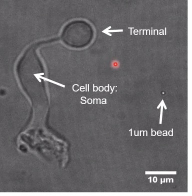 Goldfish retinal bipolar neuron —> want to study in synapses that will transmit signals from one neural cell to another (usually chemical synapses are super tiny, smaller than the cell, usually 200 nanometers), hard to visualize them