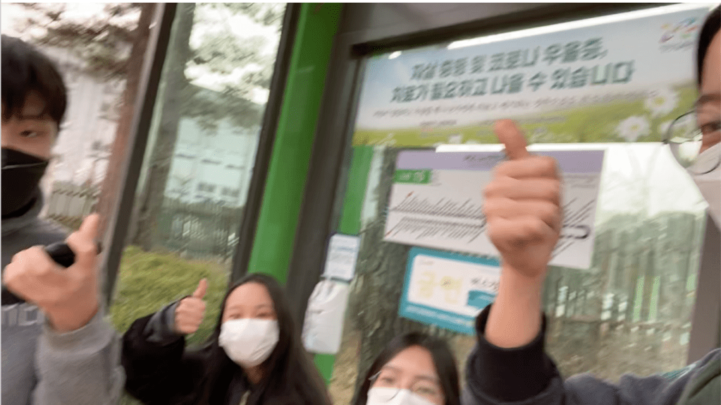 Since Won (the male student on the left) was our club treasurer, we let him navigate our way to the museum. Even though we already had figured out the basic route to the museum, Won had already prepared and studied the route to the museum, so we followed him.