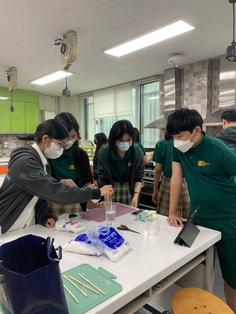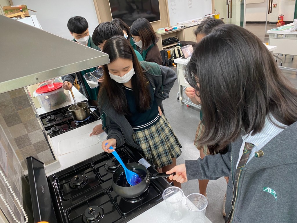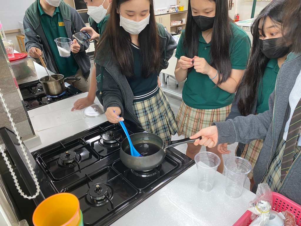 After making rock candy, we had too much sugar left, so with the remaining sugar, we created dalgona candy! Since Squid Game became so popular, we wanted to follow the trend into making dalgona candy. In fact, the making of Dalgona also has it’s own chemical reaction. When you add a pinch of baking soda to the melted sugar, it immediately bubbles up, turning golden brown. Therefore, we had a few members that added too much baking soda, and their dalgona mix became really fluffy and over-gassy.