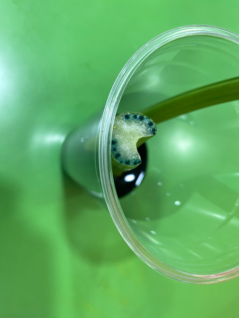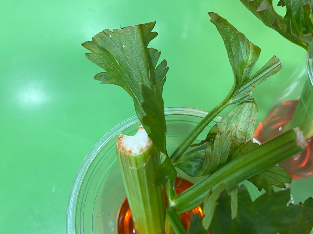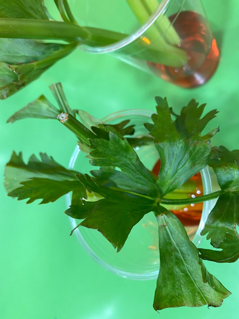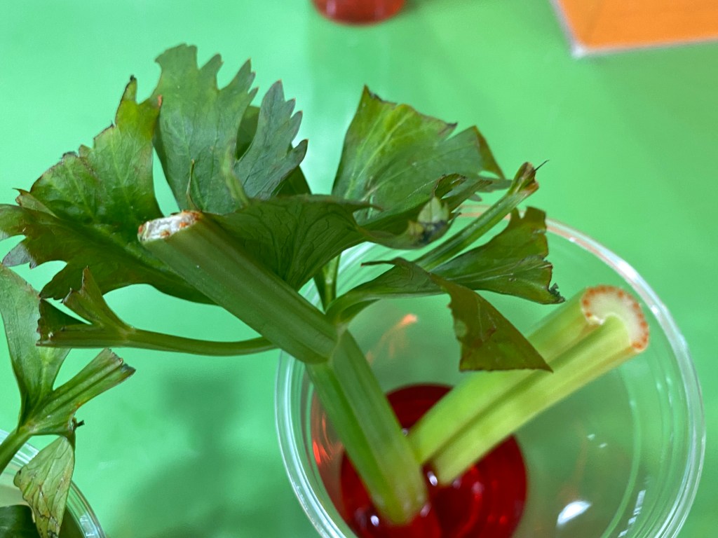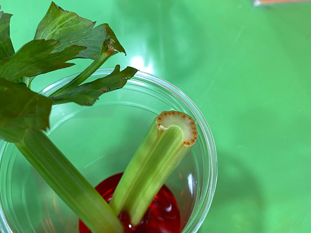 Today is the 24th of June, a Friday. Though Science class isn’t held on Friday, the lowerclass kids and I checked our celery growth and what amazing findings! The xylem of the celery were colored according to the color solution the celery was placed in, and the very ends of the leaves were tinted the color, which demonstrates that the water fully traveled through the celery! This experiment was a success ๐ (also, I never knew black food coloring was a thing until this class; the xylem interestingly turned bluish purple despite using black food coloring..)